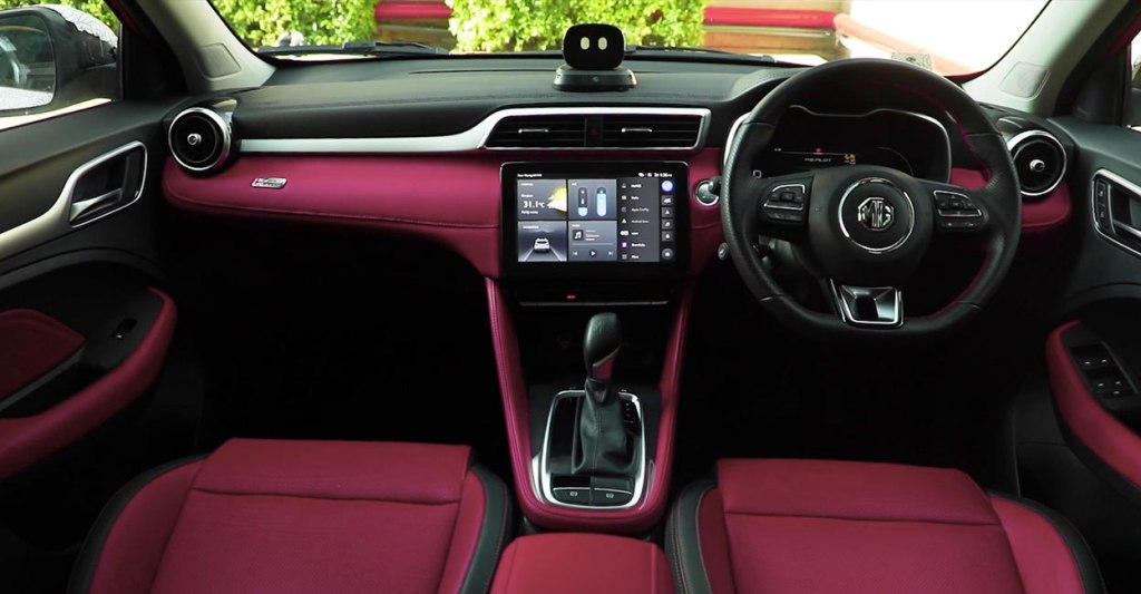 The interior features a soft-touch leather dashboard with aluminium accents. There are three colour combinations to choose from for the interior, including a two-tone Sangria Red, a two-tone Iconic Ivory and a Tuxedo Black. Taking centre stage is the 10.1-inch touchscreen HD, which is equipped with Jio e-sim for connected car features like voice control. It also has an AI assistant, which is basically a droid on Astor’s dashboard that can interact with you.